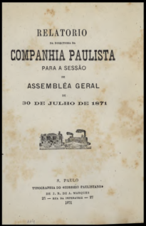 Relatório da Diretoria da Companhia Paulista de Vias Ferreas e Fluviaes Voltar 26 de outubro de 2024 by Leticia Fachesi Carneiro   Documento Metadados Miniatura Compartilhe TítuloRelatório da Diretoria da Companhia Paulista de Vias Ferreas e FluviaesData1871AutorCompanhia Paulista de Vias Ferreas e FluviaesAcervoArquivo Público do Estado de São PauloPalavra-ChaveCompanhia Paulista de Estradas de Ferro | ferrovia | relatório Continuar navegando Relatório da Companhia Paulista de Estrada de Ferro (1sem1872) Relatório da Companhia Paulista de Estrada de Ferro (1873) Voltar para a lista de itens
